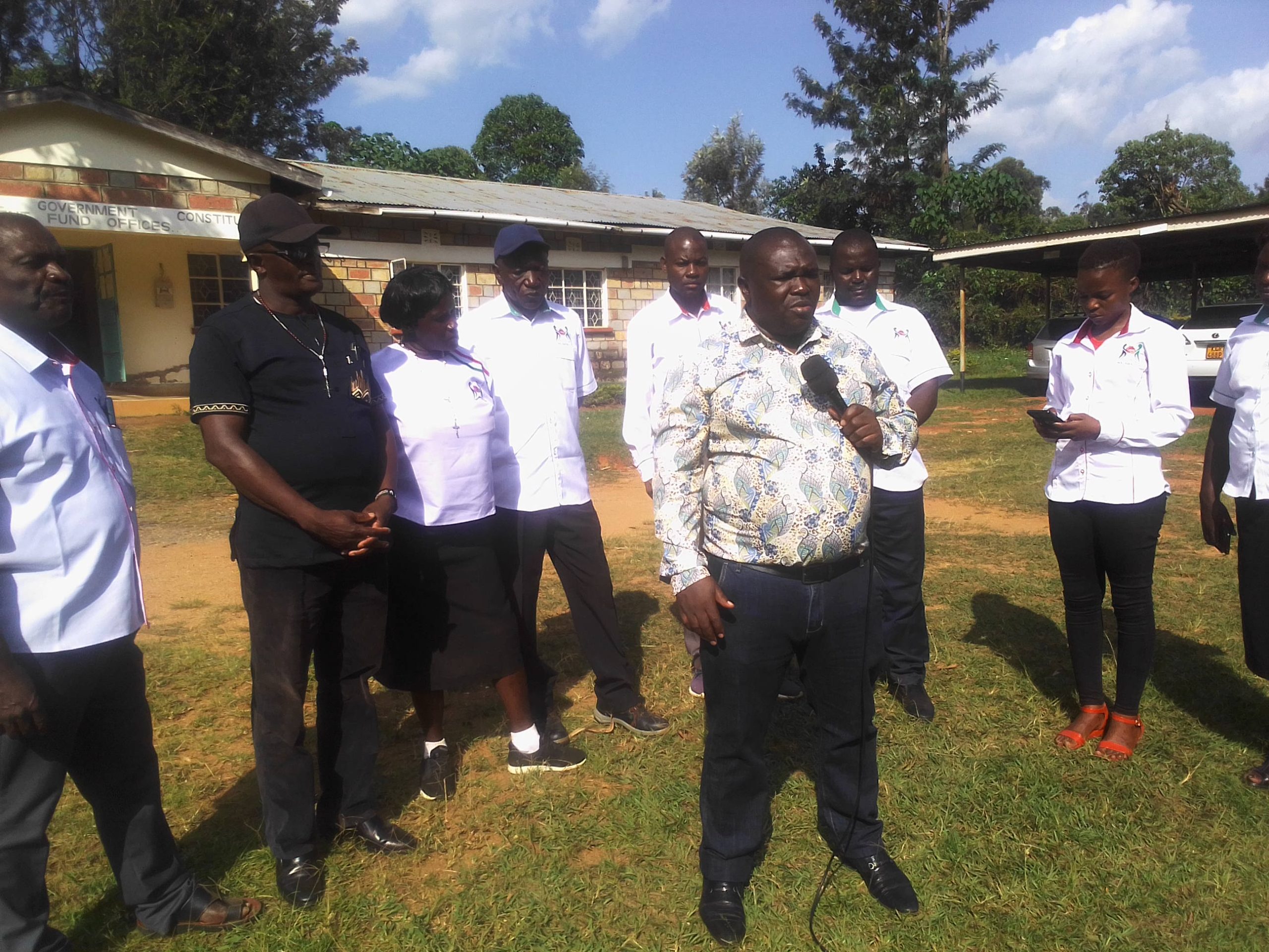 Sechero together with other NG-CDF committee members address the press outside the office.