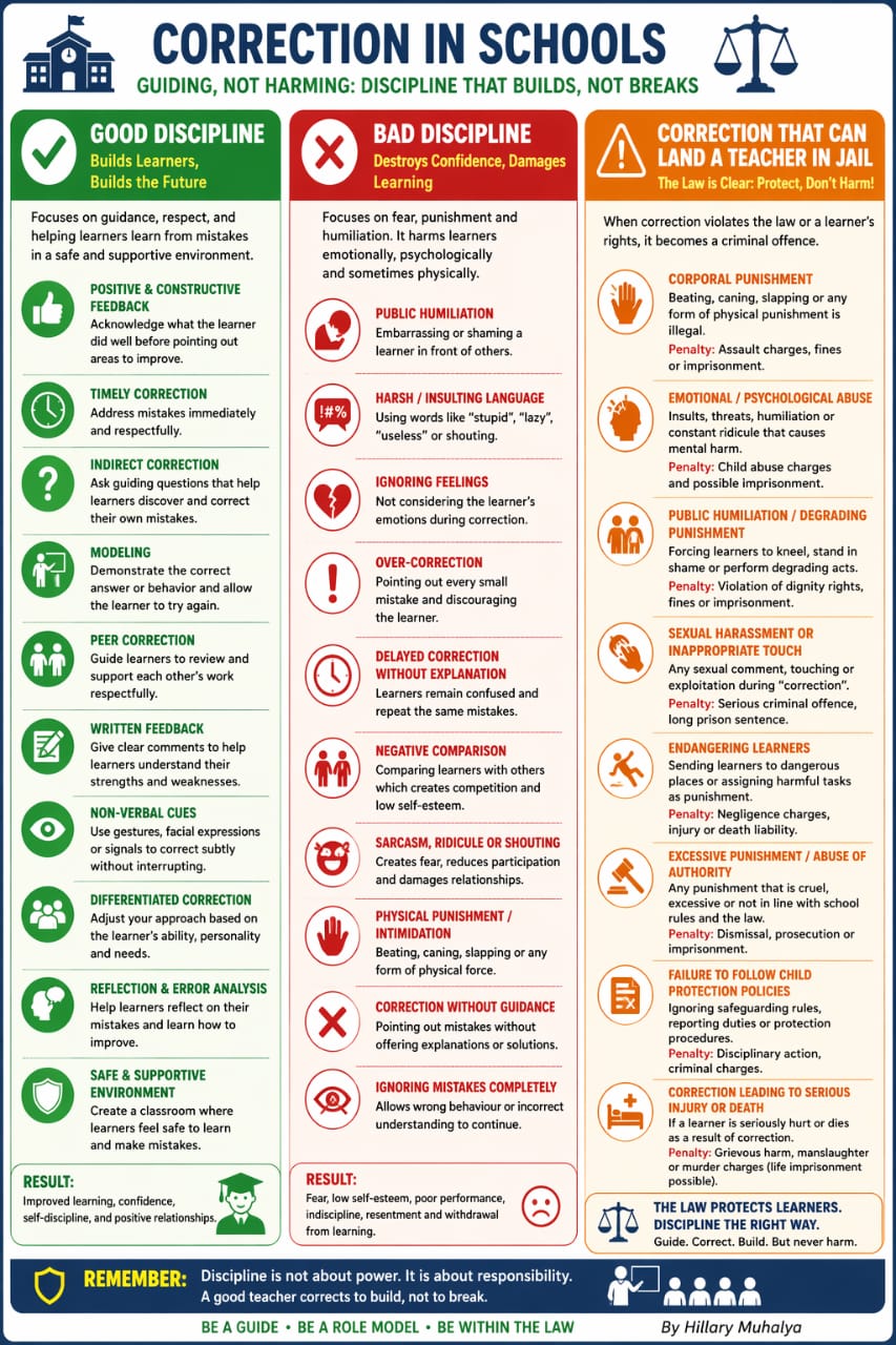 In every classroom, mistakes are expected because learning is a gradual process. However, the way a teacher responds to those mistakes determines whether correction becomes a tool for growth or a source of fear and damage. For this reason, correction must always be done in a manner that is effective, respectful, and consistent with the law.