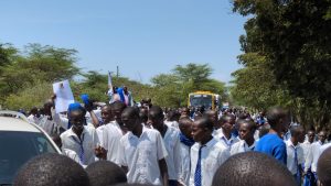 Chemoiwa, a 15-year teaching veteran, was welcomed in a grand procession as jubilant students sang and danced around her celebratory car.